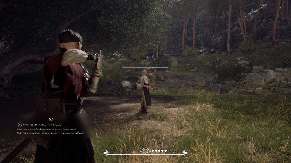 Combat in 1348 Ex Voto involves attacking with your sword, blocking and parrying. You can attack either one-handed or two-handed and there’s a dual stance mechanic which sounds great. Other games make use of stances in a similar fashion so this isn’t exactly something groundbreaking and new. Unfortunately this is where the game tends to fall apart a bit.