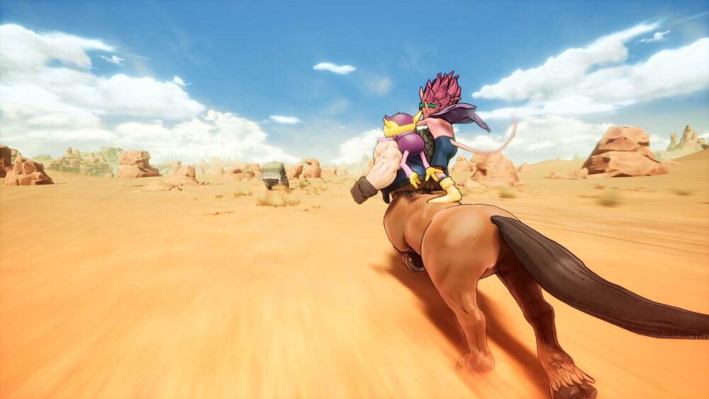 Vehicles are the core mechanic around which Sand Land has been designed, from using a motorcycle to zoom across the dunes or a hovercar to cross quicksand. And once you gain your first offensive vehicle, you’ll never want to jump into melee combat unless a story sequence requires it.