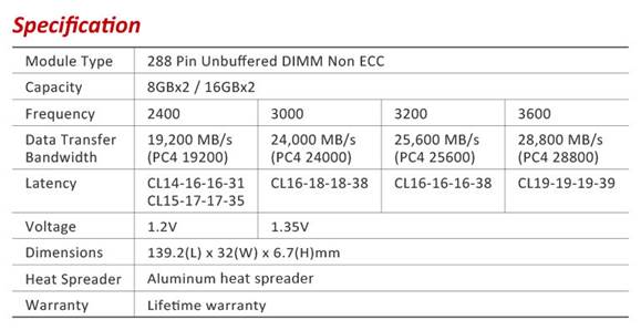 | Frequency/Capacity | 8G X2 |
