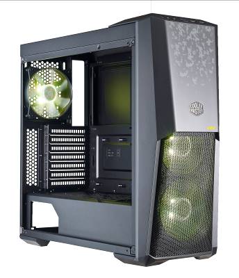 The TUF Gaming Alliance is a collaborative effort between ASUS, Cooler Master, and other brands to create a line of products for an aesthetically cohesive gaming PC. Marked by the TUF Gaming spirit, the MasterBox MB500 is a perfect addition to any (TUF Gaming) setup. A PSU cut out was designed to make the MasterWatt TUF Gaming Edition visible through the glass side panel. Military styling, complete with camouflage, outfits the case as a battle-ready soldier.