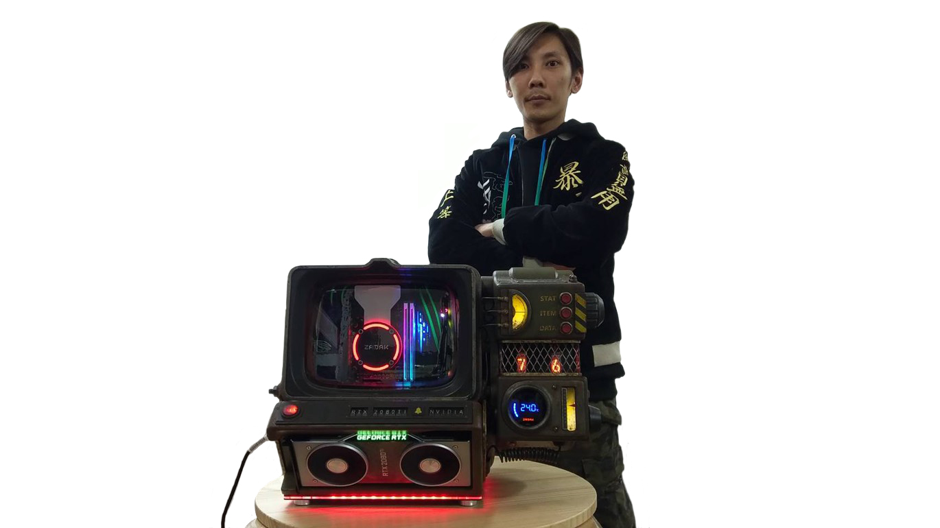 The scratch build is AK’s take on the Pip-Boy 2000 Mark VI, with ZADAK hardware taking the place of the screen. Just like the real thing, it features twistable knobs, leather detailing, exposed wiring and vacuum tubing. “I feel honored to be invited by NVIDIA Taiwan and ZADAK to attempt this kind of custom modding project, especially as NVIDIA and ZADAK are two of my favorite brands,” commented AK. “I chose the Fallout 76 theme as Pip-Boy is instantly recognizable to gamers and the MOAB II PC case fits the Mark VI concept perfectly.”
