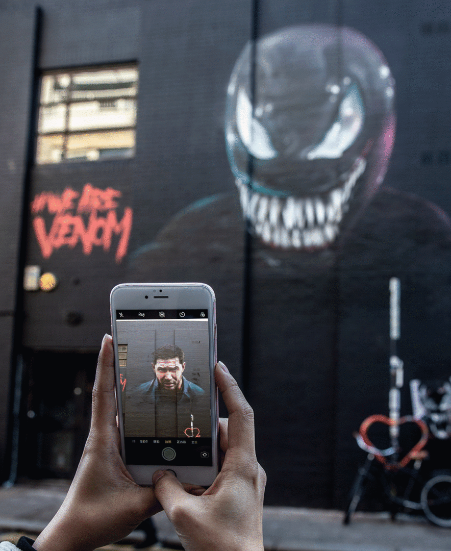 The term GIF-ITI was coined by INSA when he started creating his unique animated paintings. Created over 5 days, the installation captures the transformation of Eddie Brock (played by Tom Hardy), into the ferocious anti-hero VENOM!