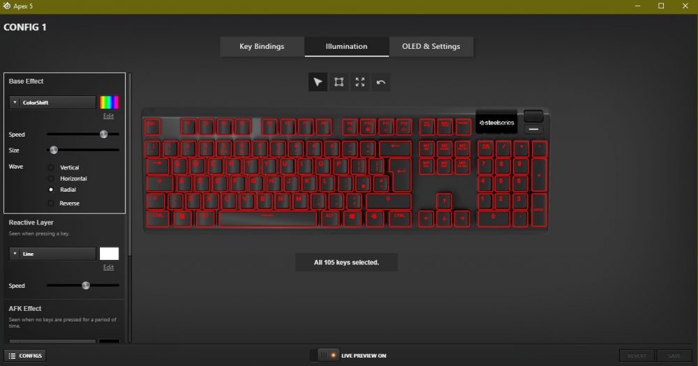 The final option available within the software is OLED configuration, which allows you to upload custom-made gifs or create your own, there are few on the SteelSeries Blog here, but do a simple search online and you might find loads more created by the community.