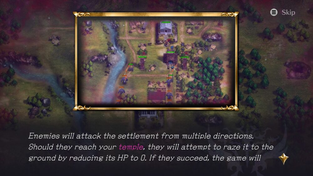 The story of Actraiser Renaissance is one of its best aspects. There are now visual novel type scenes which unfortunately are not voiced but the story explained in these scenes is still as great as ever. Players will start the game off by descending from their Sky Palace to the lands of Fillmore. Once in Fillmore, you’ll platform your way through a level and defeat a boss enemy. This then unlocks the “God Sim” aspect of Actraiser Renaissance.