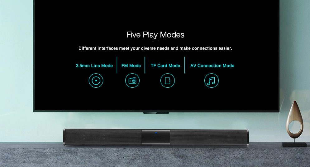 When combining this speaker with my Goodmans Bass Unit, the sound is great as the soundbar produces the highs and the bass unit produces everything in between. So would I recommend this speaker, the answer is based on budget, as this is a budget speaker you not going to get much for the price so yes I can recommend, if you are not on a budget and can afford more, then its a simple NO I can not recommend as there are much better soundbars on the market. The speaker does offer many connections from Bluetooth, RCA and MicroSD Card and the soundbar can also be run off its internal battery so allows you to place anywhere in your living space. If you are in need of a soundbar due to your TV speaker being so terrible then this is for you, its also for people on a tight budget, everyone else, look elsewhere.