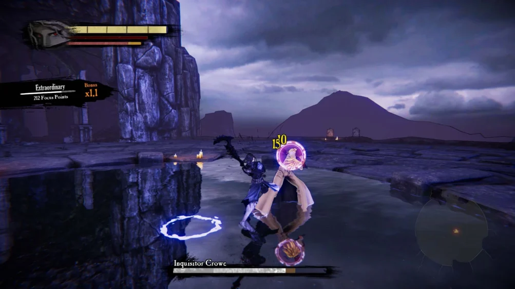 Nameless, from the Nameless Chronicles, is the only shoe you’ll be stepping into for the follow-up game, and he plays like an all-rounder; great at both melee and projectile attacks. In both games, combat is weighty and fast-paced with light and heavy attacks, AOE’s, ranged magic attacks and dodges, all governed by a stamina bar and a magic bar, both of which refill over time.