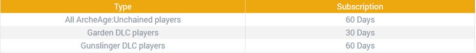 As has been previously announced, ArcheAge: Unchained now follows a subscription model, with the monthly subscription set at 9.99($,€) for 30 days. A discount can be obtained by purchasing subscriptions for longer periods. Additionally, players who paid for either the original purchase and/or DLC will be compensated with free time:
