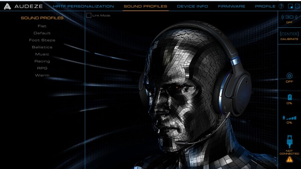 - Profiles include Flat, Default, FootSteps, RPG, Racing, Warm, Music, Ballistics, there is no way to create your own curve (EQ), which sucks.