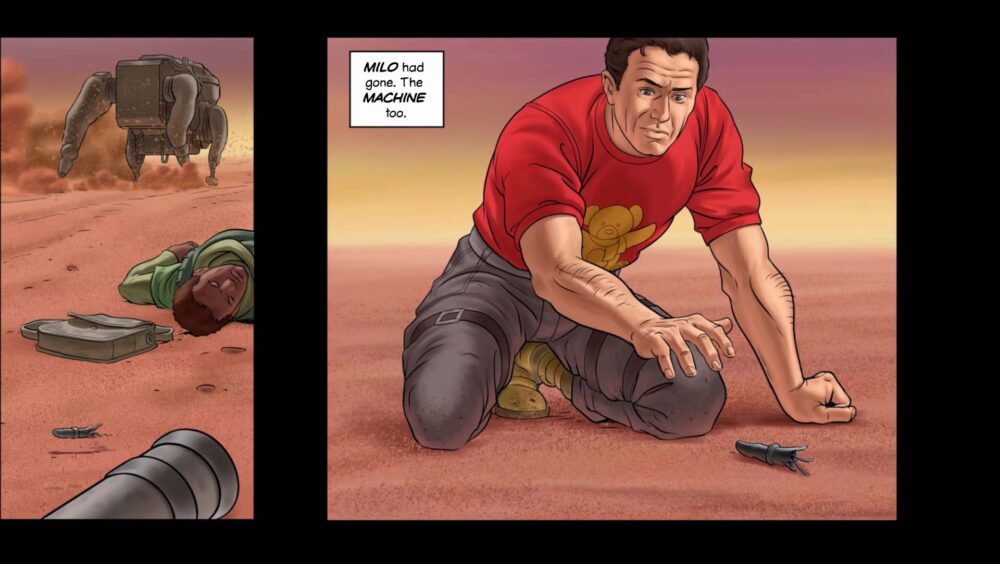 When we left Union City back in 1994, Forster had vanquished the evil A.I. LINC and left his A.I. pal Joey in charge of the city before heading back to the Gap and the world LINC had so cruelly taken from him. Alas, the past isn’t done with Forster and before you can say tragedy strikes again, well, it does. Another attack on Forsters tribe ends with the kidnapping of a boy, Milo, by androids and Forster starts off after them. The tracks, of course, lead back to Union City and yet again to Forsters past.