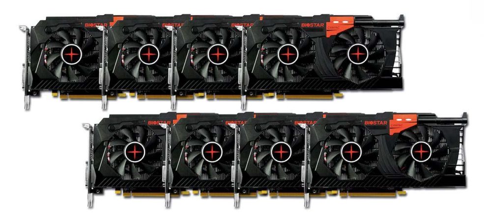 Riser Card-free BIOSTAR TB250-BTC D+ with 8X AMD RX570