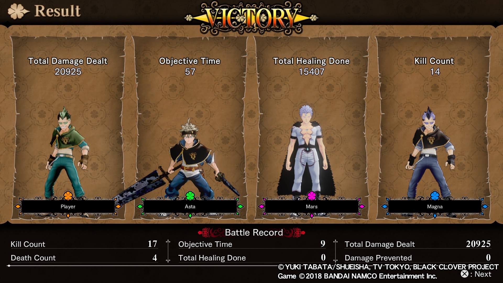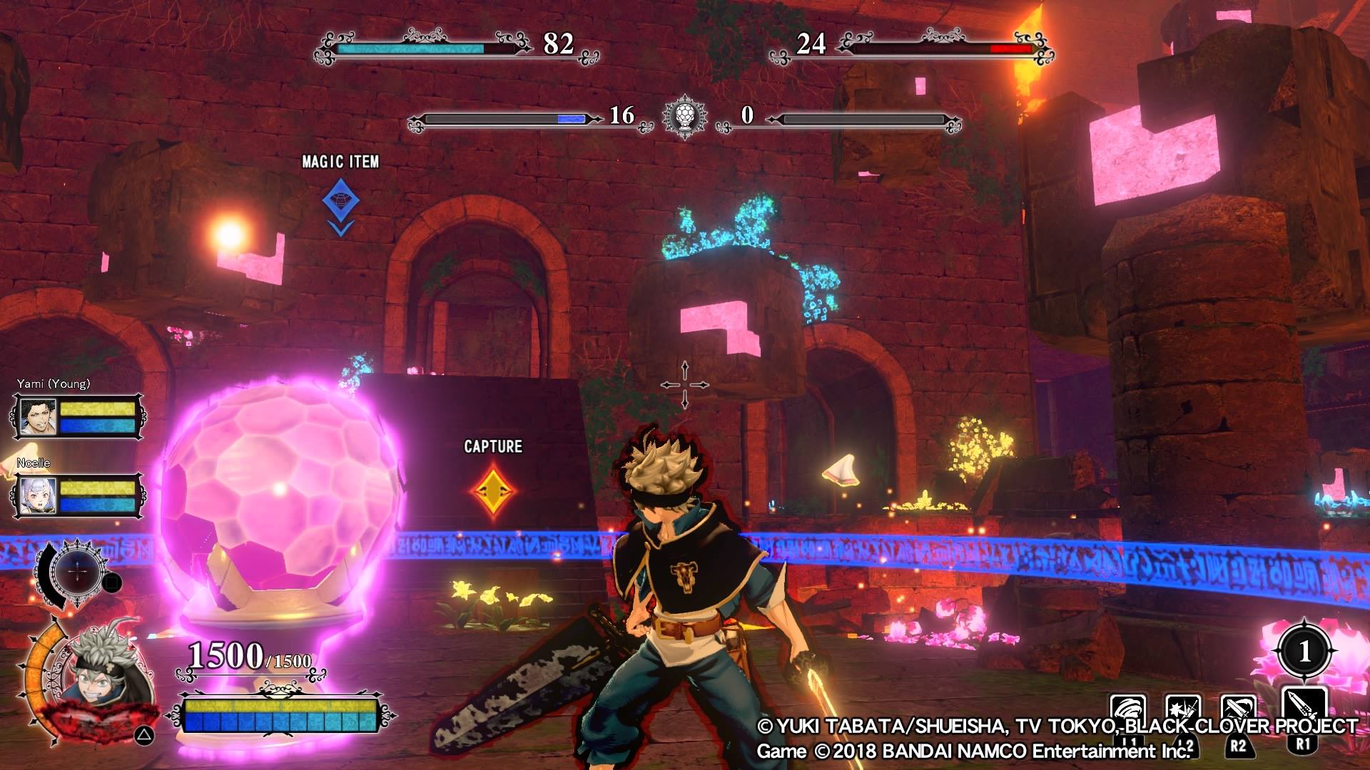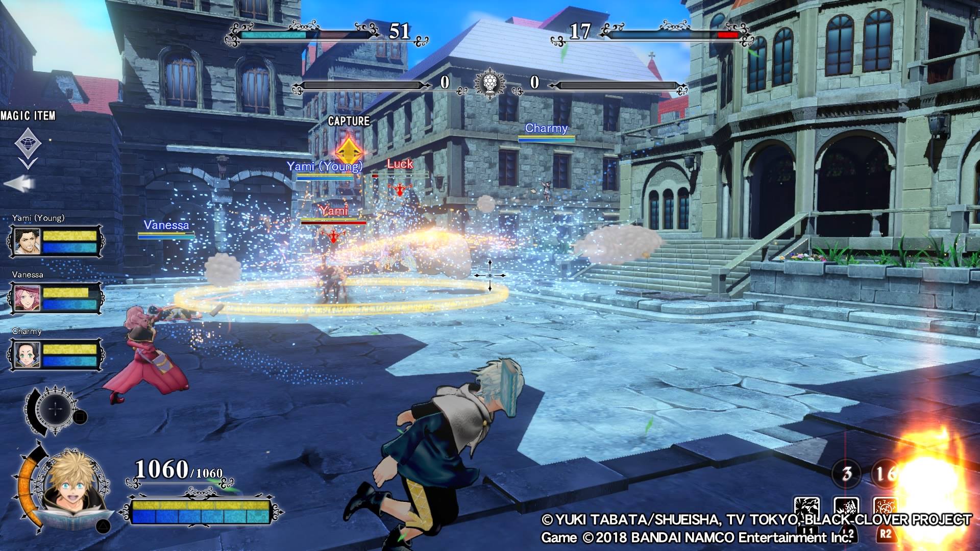 Online has many modes. I’m kidding there’s only three! And for someone who plays Paladins on a nightly basis, I only queue to one mode and that’s siege. For this case, it’s what you’d consider as Crystal Carry. Control a point to capture it and escort the crystal towards the goal. Doing so would secure you the win, then and there! No questions asked. Fail to do so, and it switches side with the opposing team immediately pushing with their own crystal after a few seconds and with one goal… to get farther than yours. Zone Control however acts as your King of the Hill type mode at which you control a point to get the win. However what I find annoying here compared to other modes is dying in the game lets you respawn to a surviving teammate which makes the overtime meter can take quite a while when enemies can touch the point as often and removes the time required to run over to the point. Treasure Hunt is the third and final mode of the 4 vs. 4 battle game where you will be required to take a key and open a treasure chest to score points. A mode that requires much more teamwork as one person is bound to taking keys and unlocking chests without any way to defend themselves. But unlike my favorite competitive hero shooter, Paladins, which I personally think is too similar, the thing separates both is Black Clover’s ability to use consumable items scattered in the map to tip the balance of the match.