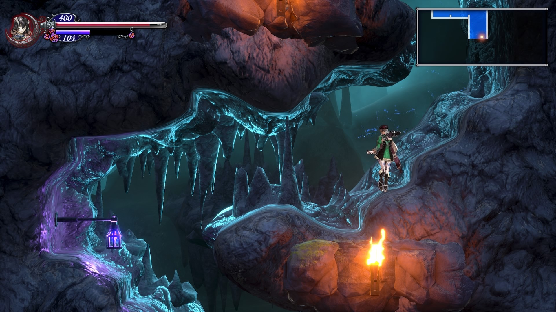 Story progression in Bloodstained: Ritual of the Night is locked behind boss enemies and the abilities Miriam can gain from them. For example, an early boss in the game unlocks the ability to double jump. Without this, Miriam is unable to access certain areas in the castle and thus cannot progress further. The game therefore funnels you into a set path but gives you the freedom to explore at your own will until you hit a block of sorts. It never feels claustrophobic or limited though and you can still have fun exploring until you eventually realize you’re missing something to progress. Figuring out where to go and what to do is not necessarily hard but you do have to pay attention to specific locations because you’ll be able to do something else there later when you’ve unlocked a new ability.