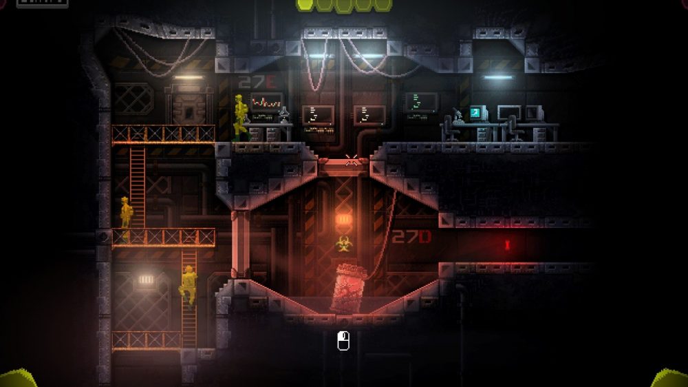 The game begins with you, the monstrous beast trapped in a biological containment unit behind closed doors. However, the scientists experimenting on you clearly didn’t implement the necessary safety precautions and you are able to easily break free from your container. The game immediately teaches you how to traverse the facility by left-clicking to move. Soon enough you’ll learn to right click to direct a tentacle to open doors, grab metal crates and even consume humans. The gameplay is incredibly simple at first.