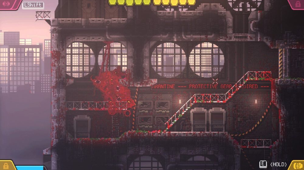 The environments in Carrion are quite varied in their aesthetic with multiple areas of the research facility, and its surroundings in the game, each having their own distinct look. Graphically, the game’s pixelated art style is gorgeous and ensures that it will remain timeless since it’s not aiming for hyperrealism but rather, artistic splendour. The tentacle monster that you play as is animated so fluidly to that the fast-paced movement truly does feel great in Carrion. Devouring humans are visually satisfying with blood and guts flying everywhere as the monster chows down on its prey.