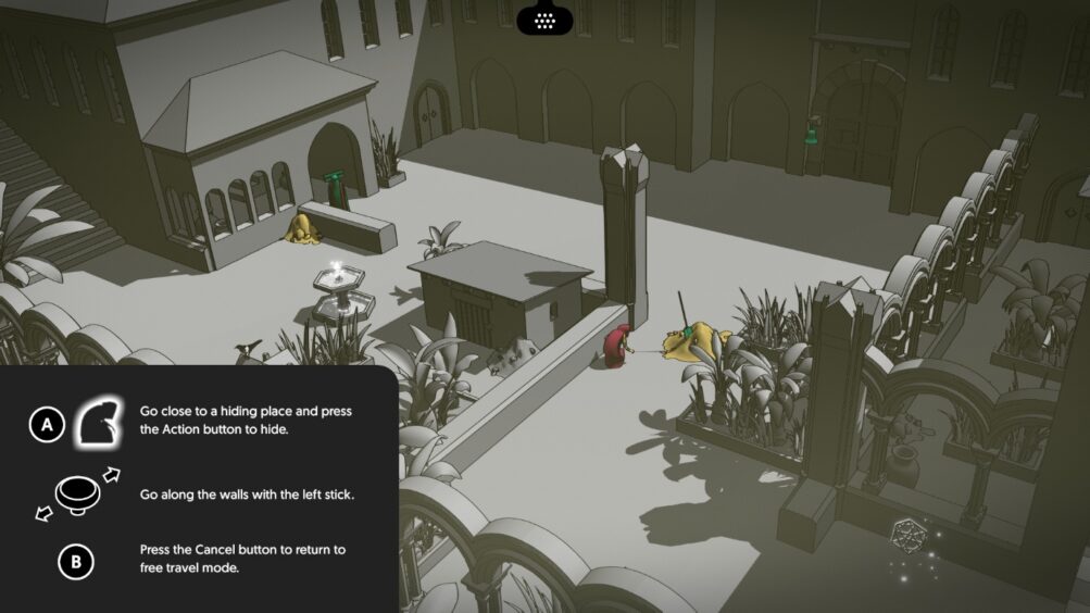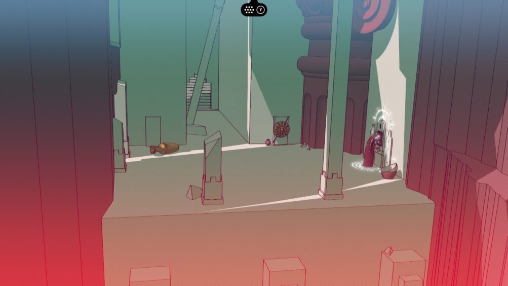 The gameplay in Chants of Sennaar starts off incredibly basic. You’ll move your hooded character around a 2.5D environment and will be able to interact with some objects. Within the first few minutes of starting the game, you’ll encounter another person. However, they speak a foreign language and you’ll have to figure out what it is they want you to do. Thankfully, the game onboards you into its educational process in such a smart manner.