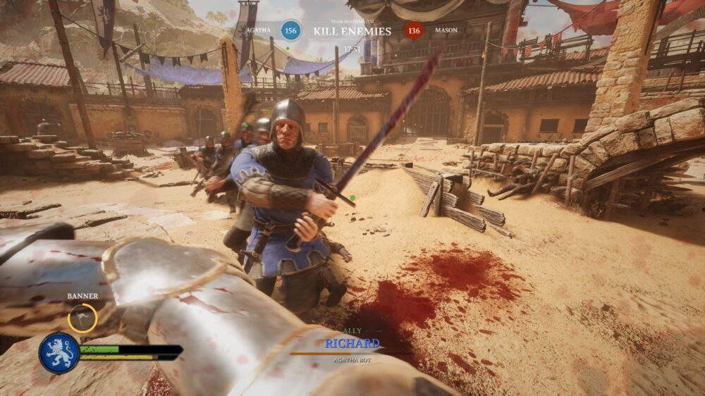 When it comes to its live combat execution, there is a handful of modes that range from team deathmatches or free-for-alls for specific maps like the Tournament Grounds which is specifically designed for these two modes. Meanwhile the other five of eight total maps currently available are made specifically for team objectives which are honestly the main attraction when it comes to a medieval hack n’ slash game. There’s a handful of objectives that are separated in multiple stages which varies per map but as an example, you can look forward to maybe doing an ambush to the marching Masons or the Agathas pushing siege weapons to scale the castle walls. Here you can try to stand your ground and go toe-to-toe with the marching cavalry however some areas also offer things like ballistae mounted in castle walls to snipe enemies from afar or as an attacker you can line up the catapult and arm it with stones to fire back at your foes.