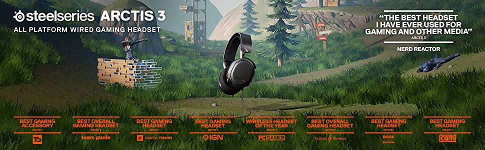 Arctis 3 is the best headset for everywhere you game, with superior sound, comfort, and style on all gaming platforms, including PC, PlayStation, Xbox One, Nintendo Switch, VR and mobile via detachable 3.5mm cables.