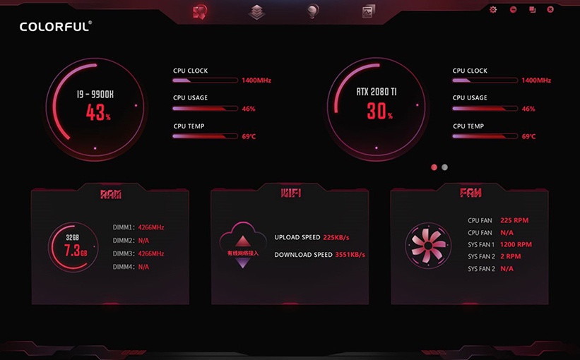 COLORFUL will be introducing the all-new iGame Center to the GeForce RTX 30 Series graphics cards. The iGame Center software integrates the iGame Zone and iGame Dynamik Light into one application. The app provides a simplified and better RGB lighting control as well as an overclocking function for COLORFUL graphics cards.