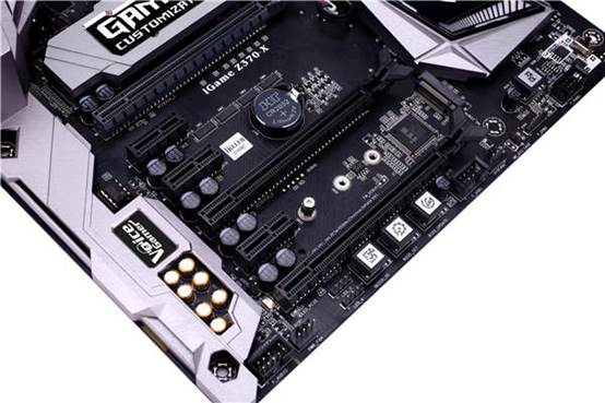 The iGame Z370 Vulcan X motherboard is equipped with three PCI-Express 3.0 x16 slots that support Crossfire technology for multi-GPU gaming. Expanding on storage performance features, the motherboard is equipped with two M.2 slots and support Intel Optane memory. The motherboard comes with a metal cooling shroud for one of the M.2 slots for optimal performance. M.2 SSDs can deliver excellent performance with the motherboard supporting up to 32Gb/s transfer speeds.