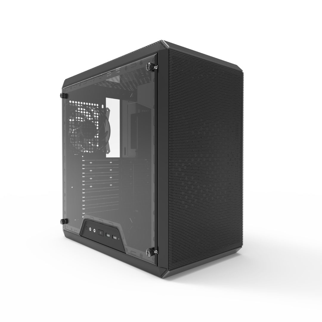 The MasterBox Q500L applies all of the versatile features of the Q series, but with the capability of supporting a standard ATX motherboard. With the same exterior dimensions as the MasterBox Q300L, support for a standard ATX motherboard in the Q500L was made possible by positioning the PSU in the front of the chassis instead of the base. The movable I/O panel and support for vertical or horizontal orientations, seen across the entire Q series, are also featured on the MasterBox Q500L. With the exterior fully perforated, and covered by a magnetic dust filter, the Q500L offers plenty of airflow for various cooling configurations.