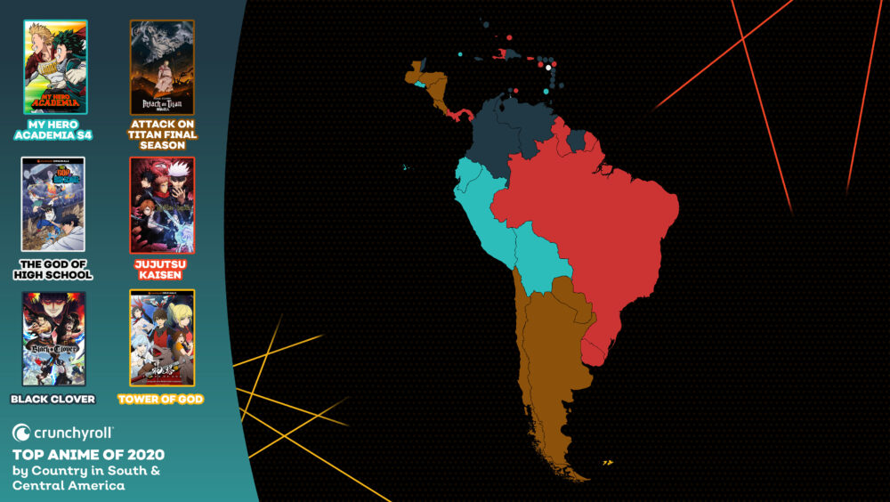 Crunchyroll has compiled an illuminating series of infographics highlighting anime viewership trends from users in more than 200 countries and territories. The maps show that My Hero Academia S4 was the most-watched show in the UK, while the Italians went mad for Black Clover and France and Germany were big Jujutsu Kaisen fans. Eastern Europeans however, preferred the Originals series Tower of God.