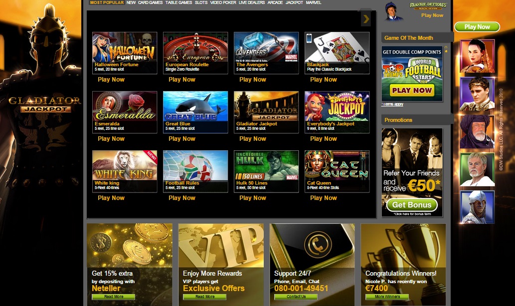 The gaming suite of the casino is overflowing with slot titles, which is definitely great news for real lovers of such games. If you are intrigued by such games as well, you might be delighted to find out that the operator offers titles such as The X Files, The Mask of Zorro, Age of Egypt, Gladiator, and Rocky, to name just a few.