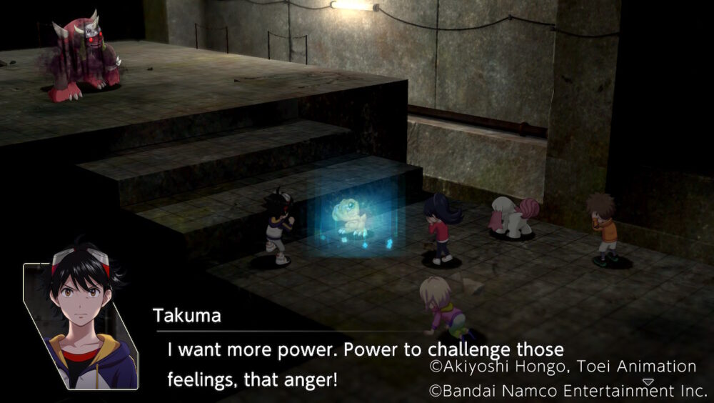 Digimon Survive tells the tale of a dark and mysterious other world. Kemonogami as they would call it are the creatures that roam that world. You take the role of Takuma Momozuka whom is on his way along with his fellow classmates on a field trip that would eventually lead them to the other world filled with said creatures that are more than happy to sacrifice them for reasons unknown. It’s a tale that really puts the horror theme going despite being chased around by a small rock golem across the woods. But all jokes aside, its captivating story is also well executed thanks to its wonderful cast of colorful characters aside from that one guy, of whom will not be named. Each character in the game is relatable with each one having their own dark secrets to hide or just want to run away from and it starts to unfold as you run through each chapter of the game.