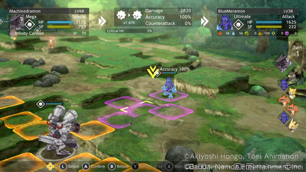 However where it starts to break the whole tactics formula is when you start spamming permanent stat enhancing items on a single digimon like Agumon until it can wipe a whole lot of digimons with a single hit from a mile away. It’s atrocious how the gameplay turns out when you can just literally go into Auto-battle for the most part and just watch yourself win a fight than actually do it. Then there’s the problem with the amount of digimon. With a small roster of 113 excluding the bonus Guilmon, you don’t particularly have a lot to choose from when that number easily shrinks to just over 30 Mega Digivolutions.