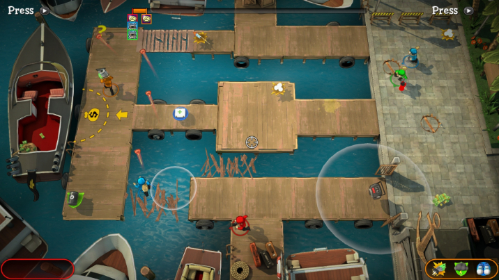 The third and arguably best game mode is the aptly named Dollar Dash. Robbers are pitted against each other to collect cash that’s situated on the map’s floor or dropped throughout the game to deposit and bank in the designated trucks either when they appear or when it’s possible to, depending on the map. You can hit others to collect their cash, collect and deposit small amounts at a time or be all out defensive and try to collect as much as you can in one go. The mode is well balanced, tactical and decent enough to be a game on it’s own merits. The more money you carry the slower you move, so choosing the right method of depositing the cash is key to success as well as holding the best weapons to either attack your foes or defend what you have.