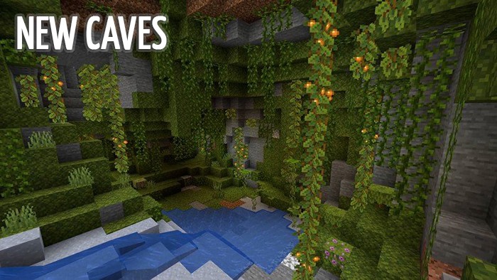 The developers of Mojang Studios in this update paid special attention to the landscapes, namely, we are waiting for the magnificent mountains, dark caves and other new biomes.