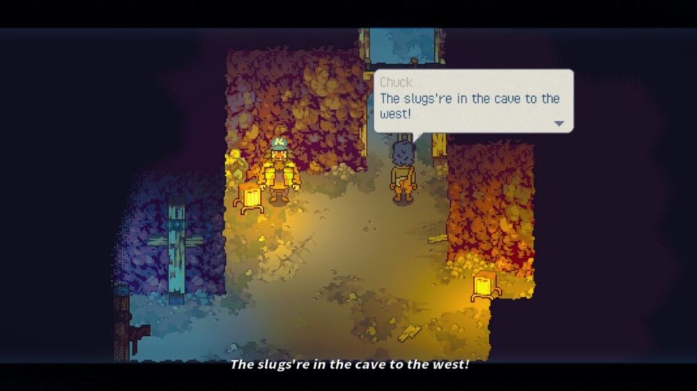 In Eastward, players will take on the role of John, a miner and Sam, a mysterious white-haired young girl. Playing as either John or Sam, you’ll adventure through the gorgeous world of Eastward while speaking to various NPCs and completing quests. Eastward kicks off with some seemingly innocent storytelling in Potcrock Isle. You’ll have to speak to a lot of NPCs and eventually, you’ll be given a frying pan. This is one of your main weapons and with it, you shall wreak havoc upon slugs in the underground mines.