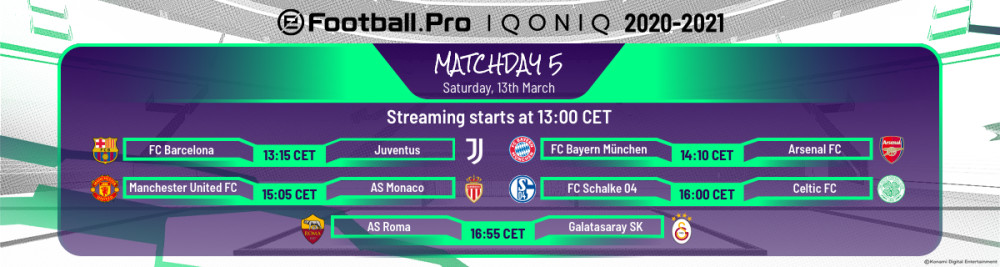 Konami has announced the fixtures and streaming details for Matchday 5 of the eFootball.Pro IQONIQ tournament, scheduled for this Saturday 13th March, 13:00 CET.