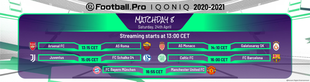 Konami has announced the fixtures and streaming details for Matchday 8 of the eFootball.Pro IQONIQ tournament, scheduled for this Saturday 24th April, 13:00 CET.