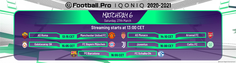 Konami has announced the fixtures and streaming details for Matchday 6 of the eFootball.Pro IQONIQ tournament, scheduled for this Saturday 27th March, 13:00 CET.