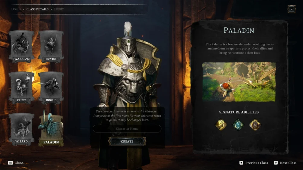 Outside of combat zones, players manage a personal lodge area where vendors, crafting systems and progression mechanics unfold.
