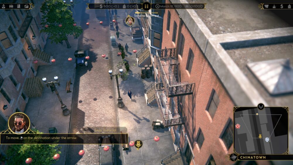 The game scales across console, including the Switch, and PC due to being built in Unity. As such the game is very stable at least on the PC version running at a 60FPS on the highest settings. But there is a trade-off as the game does not standout graphically. The character models are detailed yet bland and can look like wax statues. The art direction though is not a simple case of purchased, generic assets and the team has put in a lot of effort to evoke the 1920s in the design of the building, environments, and characters. The only slight gripe I have with the game environments is that the cities and streets are too clean and neat, it looks a bit too sterile.