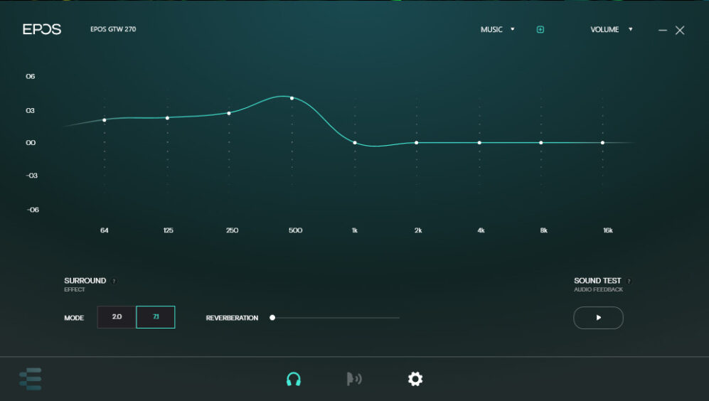 Within the software you can play with how the earbuds sound, 2.0 or 7.1 create your own EQ and set surround sound reverberation, however, once you remove the dongle from the PC, you lose those settings, as there is no way to save your profile to the EPOS GTW 270 to use on the fly, which is a shame but to be expected as I have said over and over, EPOS find a way to add profile saves to your devices, please.