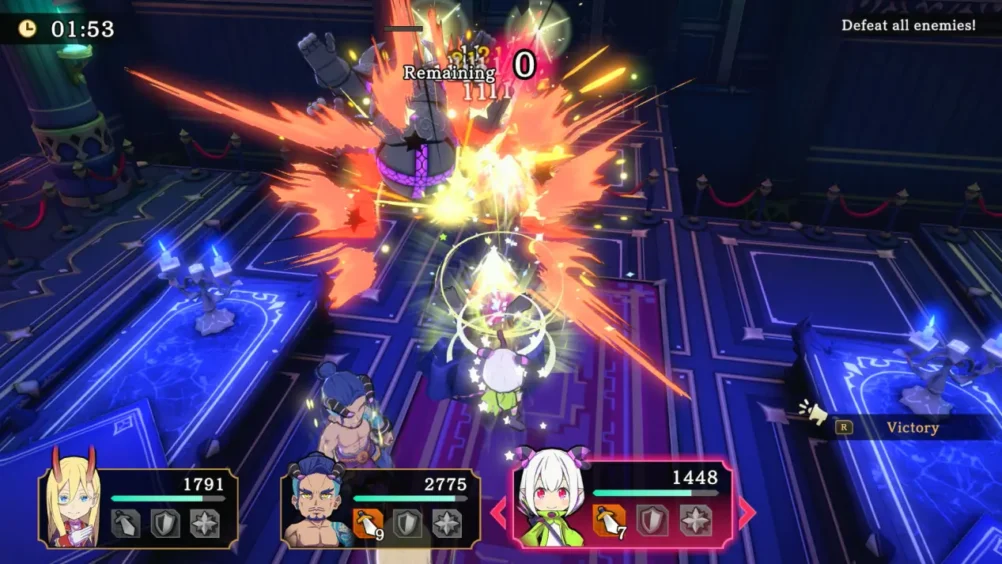 In terms of gameplay, it’s vastly different from the usual Disgaea but with the same familiarity and quirkiness. So instead of a tactical RPG, you have a sort of party game vibes going on where you freely control or switch between one of four characters inside an arena-like map while also having both local and online multiplayer.