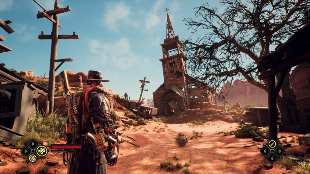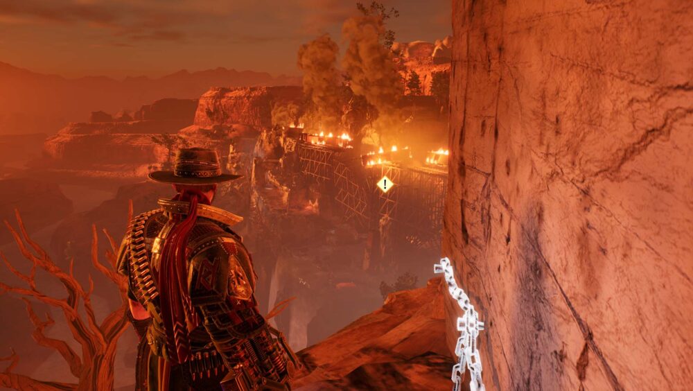 Evil West feels like a game that would have graced the PS3/Xbox 360 era with aplomb. It’s an old-school style, arcade experience composed of linear level design leading to arena-based encounters. There’s some very light exploration to hide the games corridor nature which leads to the aforementioned diaries, letters and money (Bucks here) that you’ll need to purchase upgrades with.