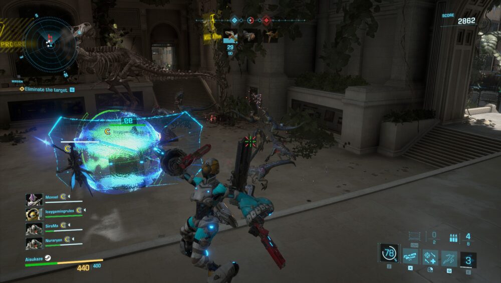 Moving around and shooting at Dinosaurs is fluid and the game really starts to feel a lot better after youβve sunk some time into upgrading your suits since cooldowns would be reduced and youβll have way more firepower at your disposal.