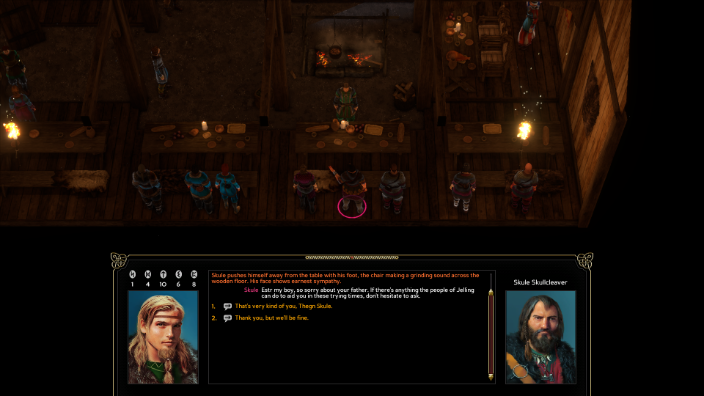 So during the feast, you’ll have to wander around and talk to some of the Clans most predominant figures about how your father was great (or not so great) and how you will plan to become a fantastic leader. Further more, most of these guests are trying to overthrow you as Thegn, so it’s aΒ bit of a tense situation, but hey ho, who can complain with all this mead?!