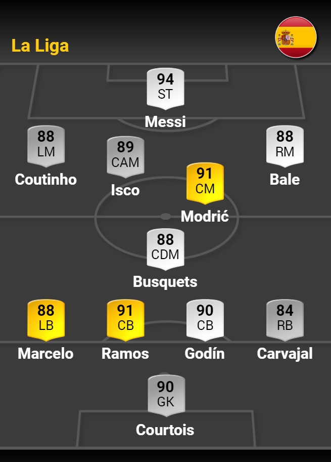 - Best possible 11: Courtois – Marcelo, Ramos, Godin, Carvajal – Busquets, Modric, Isco, Coutinho, Bale, Messi
