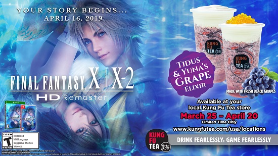Fans will also have the opportunity to enter into a daily sweepstakes and an add-on giveaway through Kung Fu Tea’s official social media channels for a chance to win a digital copy of FINAL FANTASY X/X-2 HD Remaster or a custom-designed Xbox One or Switch console.