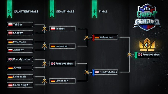 Sunday’s first semifinal match saw November GWENT Open finalist Damian “TailBot” Kaźmierczak go up against Wild Card player Benjamin “Kolemoen” Pfannstiel. The match ended with a close call 3:2 win for Pfannstiel. However, it was the second semifinal between November GWENT Open winner Frederick “Freddybabes” Bird and previous GWENT Challenger champion Adrian “Lifecoach” Koy that turned out to the the real shocker, with Bird managing to pull off a 3:0 win against one of the best card players in the world.