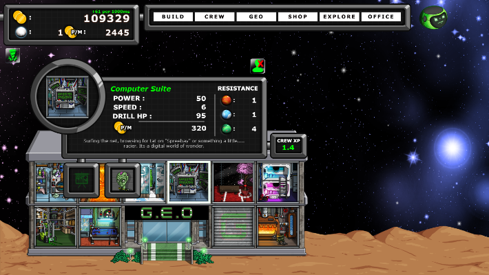 Games that are labelled as frustrating are done so for a couple of reasons. First, they are designed that way, Dark souls is designed to be frustrating but the mechanics come together in a way that allows the player to learn and get around the problem so the frustration goes down with the player improving. Or secondly they fall into the trap of being frustrating because the game’s mechanics collapse in on themselves and creates a mess which unfortunately is what has happened to GEO. It’s not really a bad game, it’s got an okay concept but the design decisions behind that concept have overlapped in a way that makes the game annoying. Clicker games and mobile games aren’t normally built to be played for long amounts of time like console games or PC games but this is a mobile game wearing an “I’m a PC game” shirt. The progression is so slow that most people picking it up on steam will get bored of it quickly or leave in frustration like I did. My advice from one dev to another would be to look back and tinker with the numbers, scale the distance between rewards down and make sure aliens stay out of the tutorial area where the players can come to terms with the new threats and then that might redeem it but currently that isn’t the case. It’s a hard asteroid to mine through but if you get to the other side you may have a good time but that may be a lot to ask for.