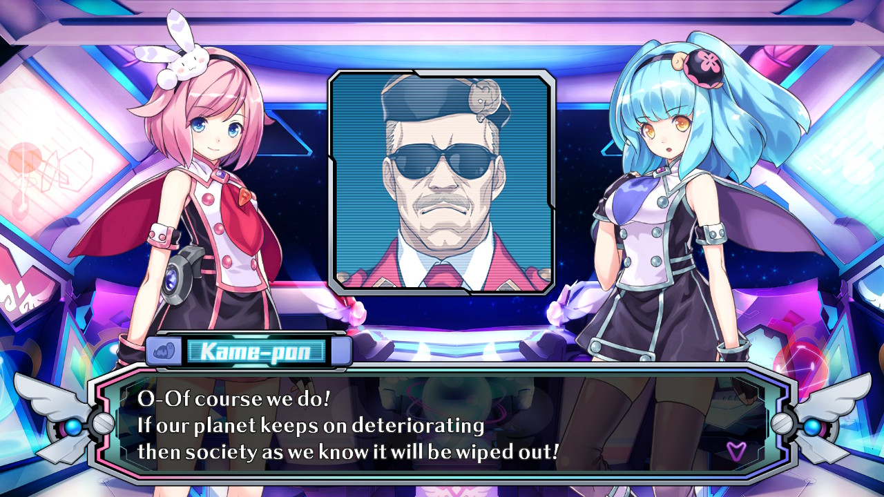 In Gun Gun Pixies players will take on the role of Bee-tan or Kame-pon. They are two alien girls from a far away world known as Pandemo. On Pandemo, individualism has taken its toll on society and people cannot form relationships or bonds with each other anymore. Bee-tan and Kame-pon however can still do this. They share a friendship bond that made them the ideal candidates to send on an interstellar journey to find a solution to Pandemo’s problems.