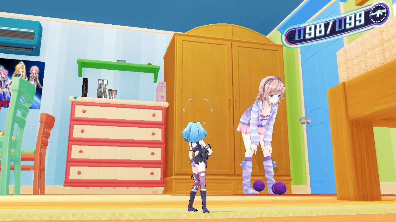 Graphically, the anime aesthetic of the game is on-point with character designs being great, as expected from Idea Factory International and Compile Heart. However, the same cannot be said regarding the environments themselves. They could use a lot of work as they just seem far too basic. Since you’re playing as a tiny alien girl in a giant human’s dorm room, everything is enlarged and could use a lot more detail.