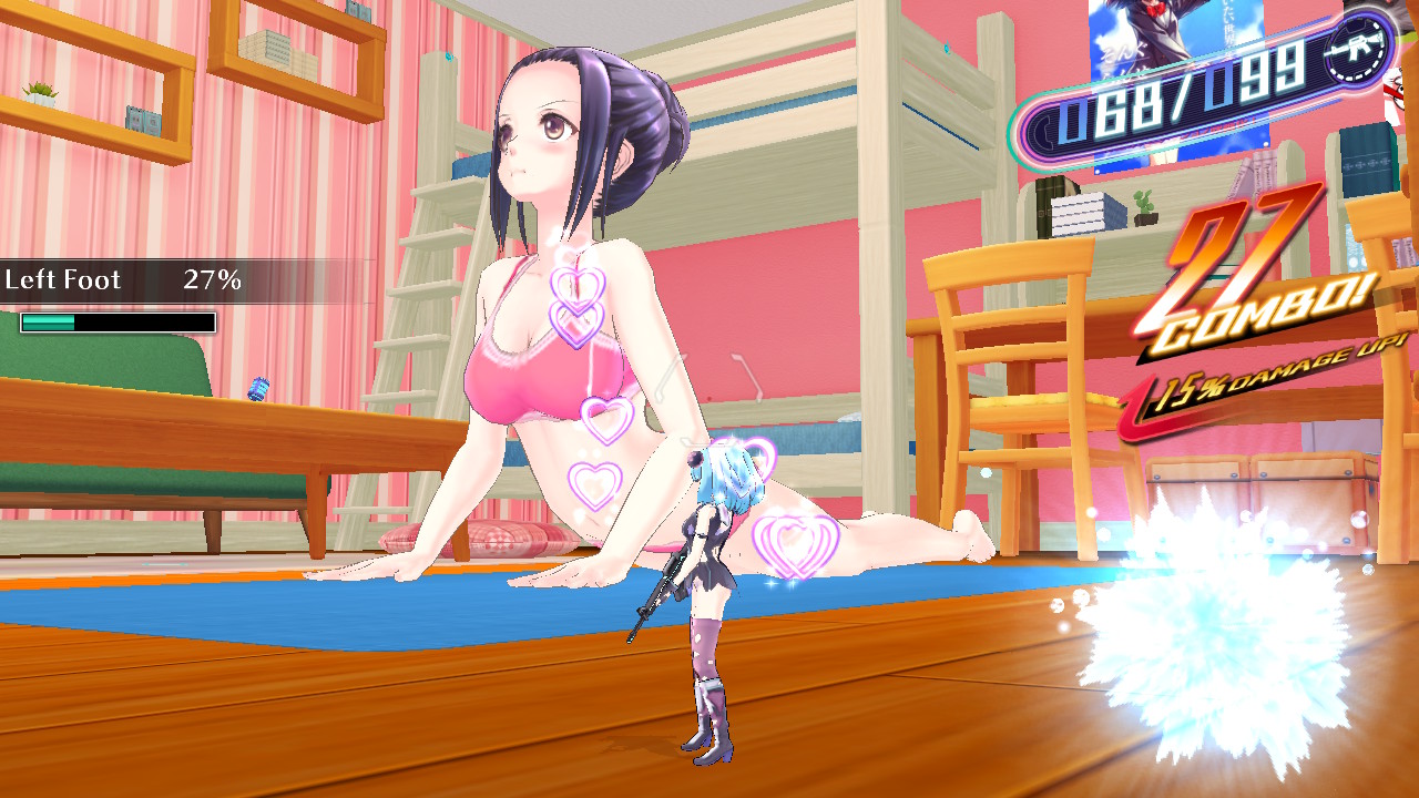 As mentioned above, the game delves into the lewd and this is clearly its main selling point. Shooting happy bullets at the girls leads to them writhing in ecstasy as the happy bullets release endorphins. Some missions ramp up the lewdness completely such as having to pacify a girl doing yoga by shooting happy bullets at different sections of their exposed body. In another, you’re privy to a bathing scene and have to once again, fire happy bullets at the girl. If you’re a fan of fanservice, this is a game for you. If not though, it will seem like just another pointless exercise in driving the plot forward.