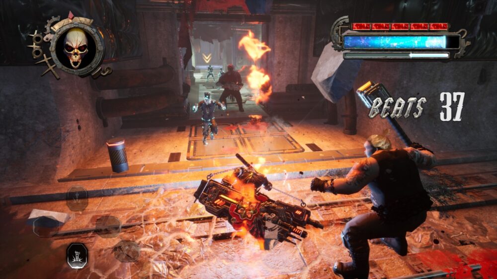 As you fire shots at enemies, youβll rack up βBeatsβ. Beats are essentially your combo total and once youβve surpassed 50 beats, youβll be able to perform an attack where Grave can spin and fire his Ceberus pistols around him dealing damage in his immediate vicinity. This is useful in situations when you are surrounded but cannot use a Demolition Shot to save yourself. Grave can also use his coffin to melee attack enemies but the damage it does is rather lacklustre compared to his guns. With that said, he can use his coffin to deflect projectiles such as rockets right back towards enemies and this is fun to do. Grave can also enter a Fury mode where he does more damage and this is reminiscent of other third-person action titles which have a similar gameplay mechanic. If it ainβt broke donβt fix it eh?