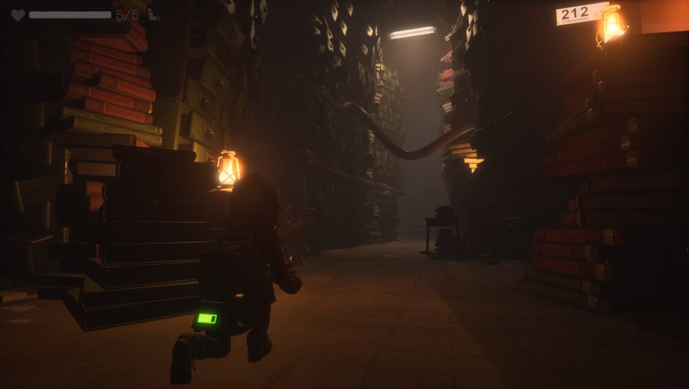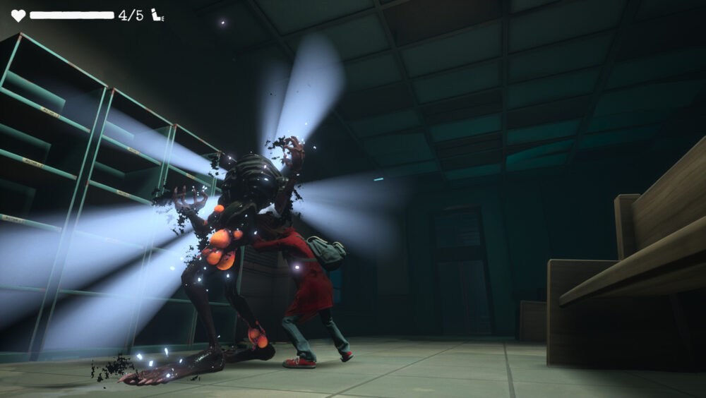 Even if you play reckless, your torch has a rapidly-recharging flash function that stuns multiple enemies; resources like battery charges and inhalers (your health item) are abundant; basic monsters do little damage and are easy to flee from; while hiding spots – usually a vent of some sort – are commonplace. As a result, it’s the puzzle-like boss encounters the present the only real threat and even they can be defeated without taking a hit once you understand their simplistic behaviours and whatever gimmick is required to defeat them.